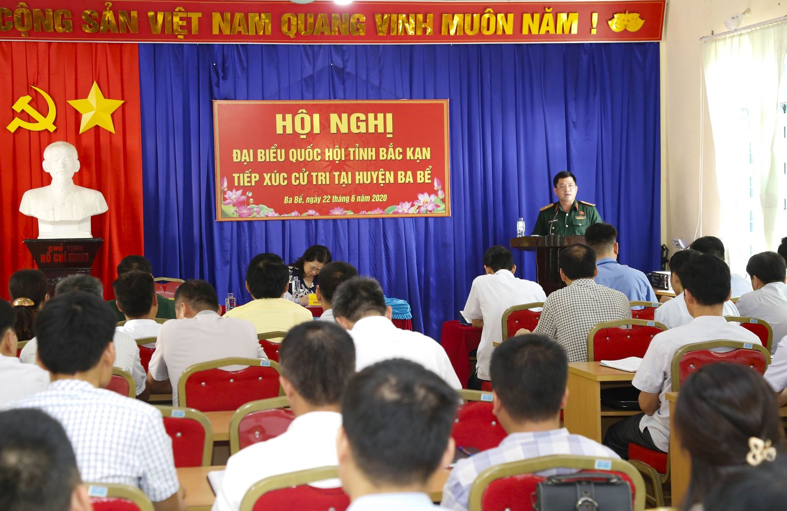 Thực hiện kế hoạch tiếp xúc cử tri sau kỳ họp thứ 9, Quốc hội khóa XIV, sáng 22-6, tại Trung tâm Chính trị huyện Ba Bể, thuộc xóm Tin Đồn, xã Thượng Giáo, huyện Ba Bể, tỉnh Bắc Kạn, Thiếu tướng Nguyễn Hồng Thái, Tư lệnh Quân khu cùng đoàn đại biểu Quốc hội tỉnh Bắc Kạn đã tiến hành tiếp xúc cử tri là đại diện các đơn vị LLVT tỉnh Bắc Kạn; đại diện Đảng ủy, HĐND, UBND, UBMTTQ huyện Ba Bể; các phòng, ban, cơ quan chuyên môn, các cơ quan, tổ chức, đơn vị; đại biểu đại diện cho các cơ sở sản xuất kinh doanh; cử tri các xã, thị trấn trên địa bàn huyện…