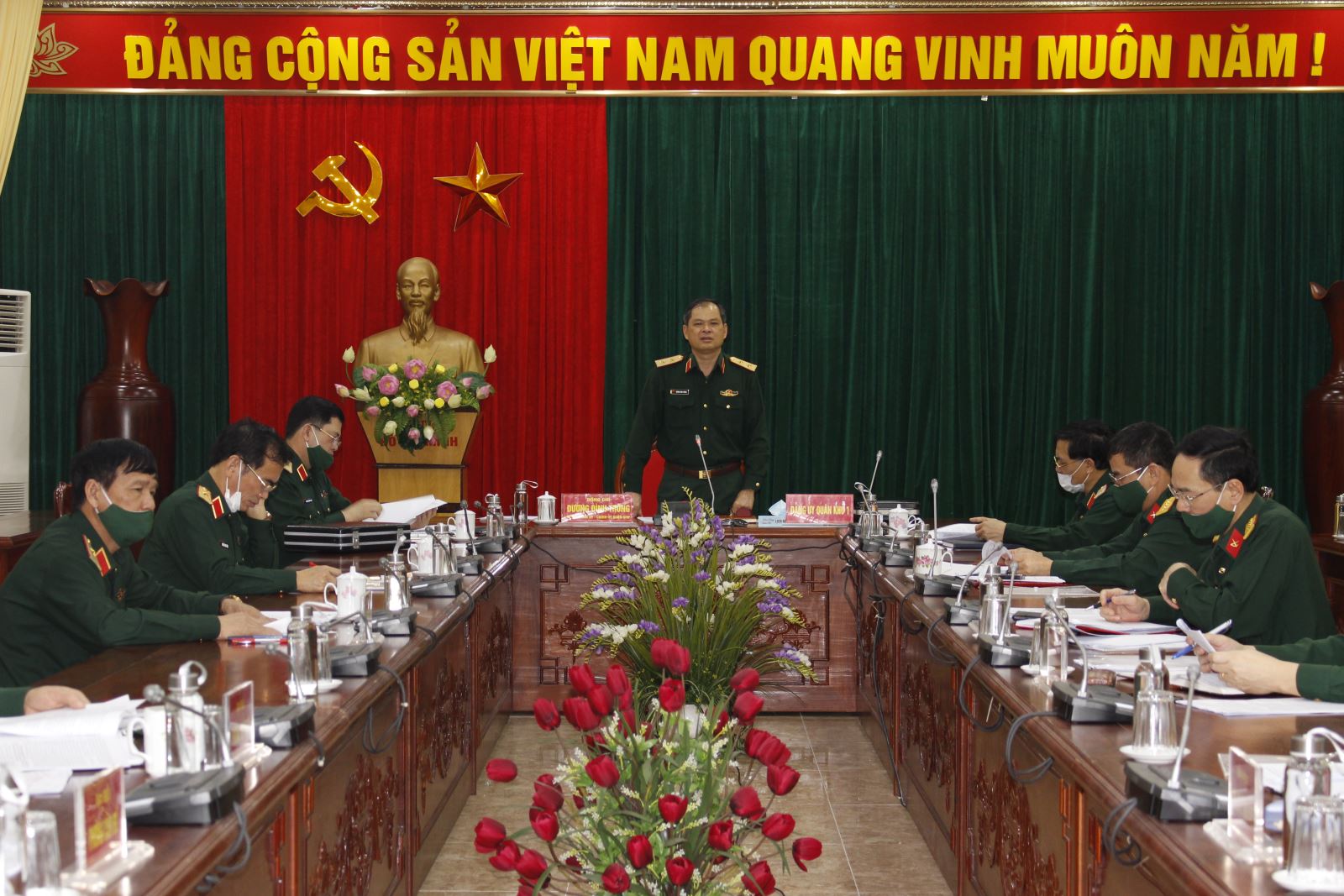 Trung tướng Dương Đình Thông, Bí thư Đảng ủy, Chính ủy Quân khu đánh giá công tác chuẩn bị văn kiện Đại hội của các Đảng bộ cơ sở trực thuộc Đảng bộ Quân khu.