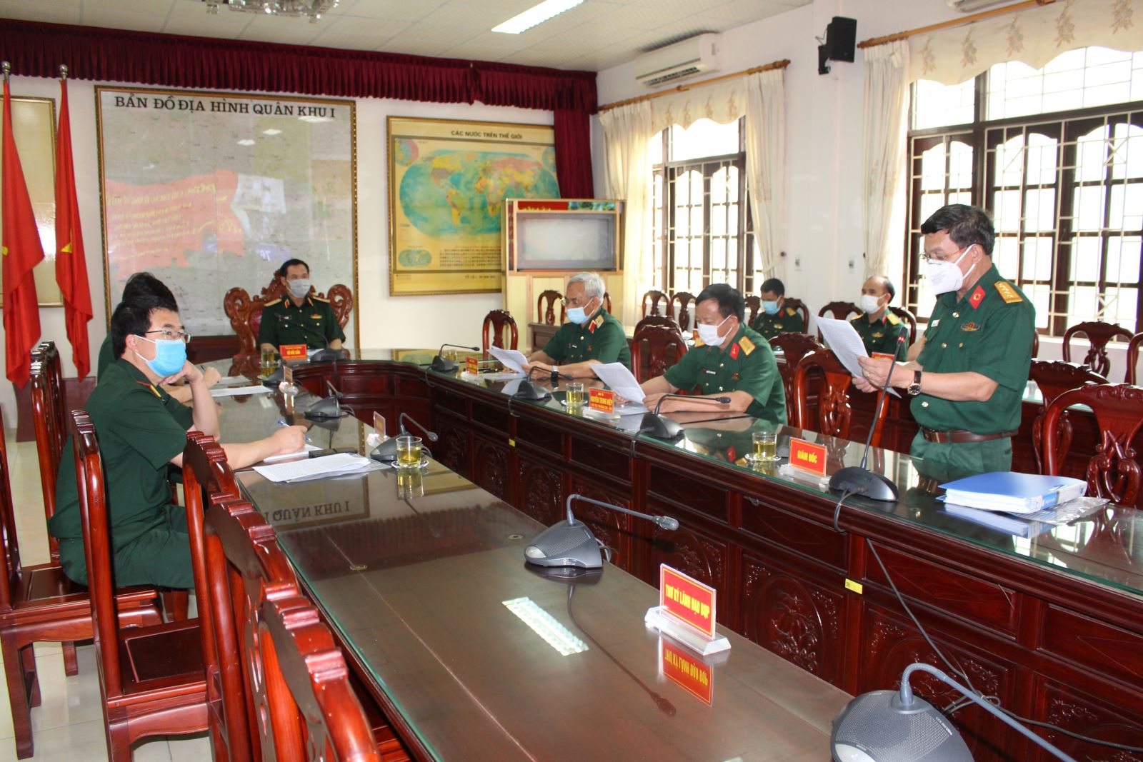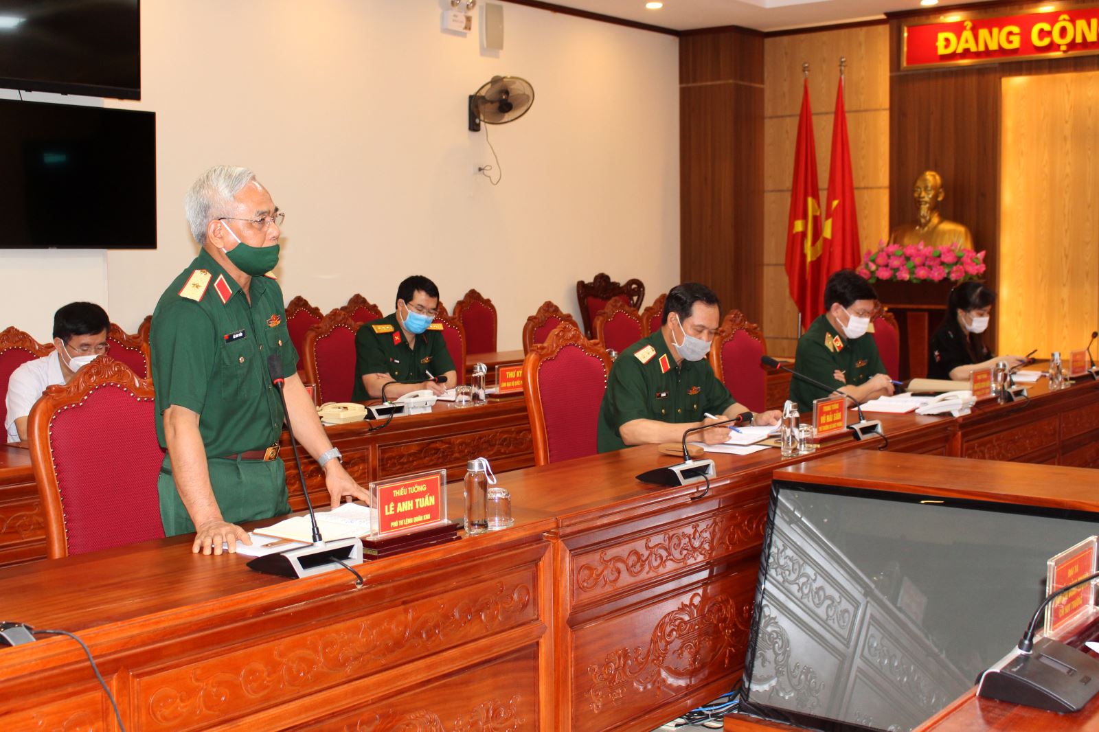 Thiếu tướng Lê Anh Tuấn, Phó tư lệnh Quân khu 1 phát biểu tại buổi làm việc