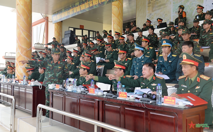 Tại khu vực Sở chỉ huy diễn tập của Quân đoàn 12, sau khi theo dõi các lực lượng tổng duyệt các nội dung thực hành diễn tập qua màn hình trực tuyến; trực tiếp kiểm tra công sự, trận địa, căn cứ hậu cần, kỹ thuật, khu vực trú quân của bộ đội, Thượng tướng Nguyễn Tân Cương biểu dương tinh thần chủ động, trách nhiệm cao của các lực lượng tham gia diễn tập; đặc biệt trong thời gian gấp, nhiều lực lượng, nhiều loại vũ khí, trang bị kỹ thuật, hệ thống công sự, công tác bảo đảm lớn, nhưng các cơ quan, đơn vị đã phối hợp chặt chẽ, làm tốt công tác chuẩn bị và thực hành diễn tập đúng ý định.