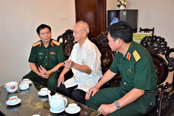 Thượng tướng Nguyễn Tân Cương thăm hỏi, chúc sức khỏe Đại tướng Phạm Văn Trà.
