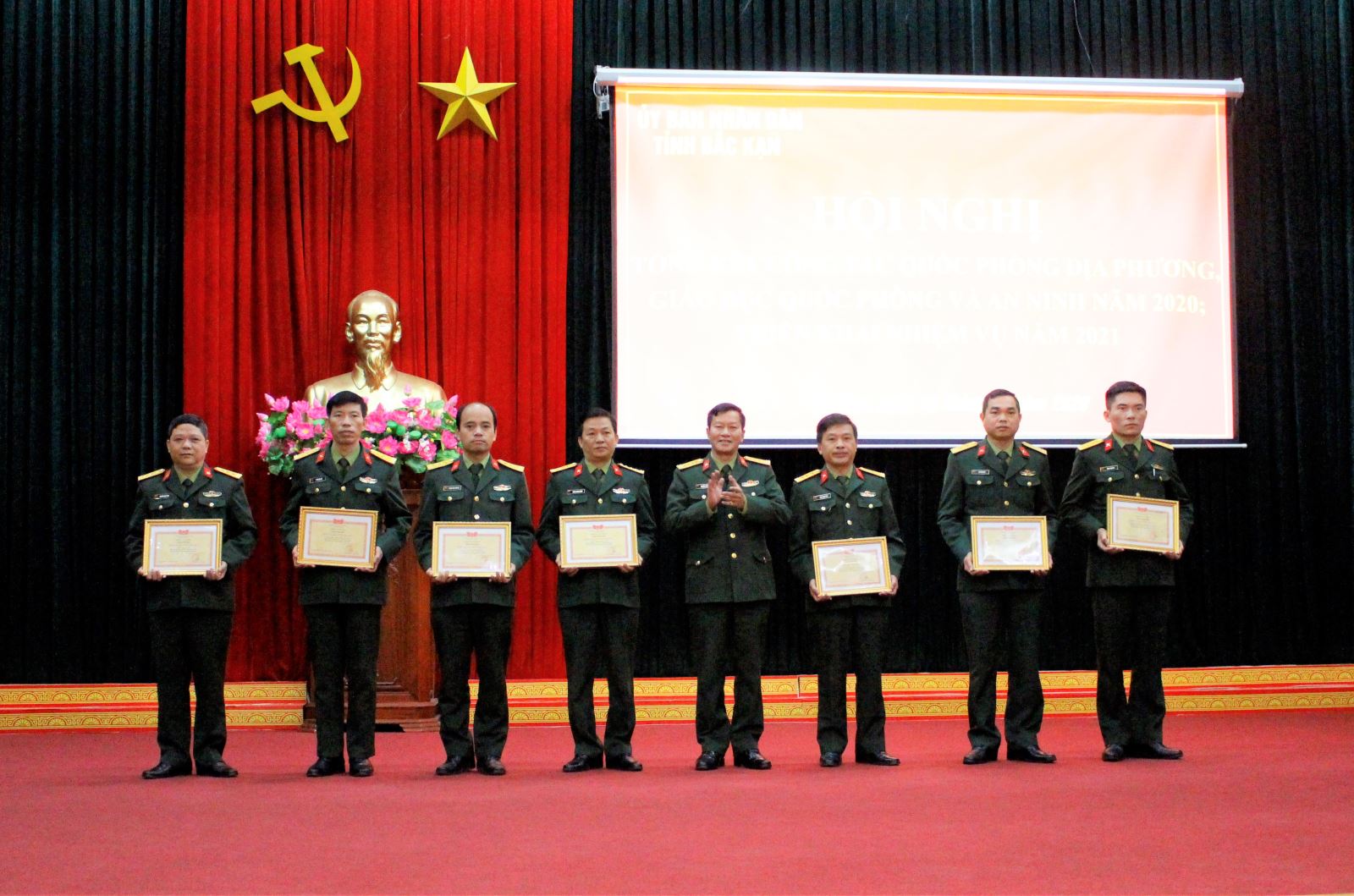 Lãnh đạo Bộ CHQS tỉnh Bắc Kạn trao thưởng cho các tập thể có thành tích xuất sắc trong thực hiện nhiệm vụ QP, QSĐP năm 2020.