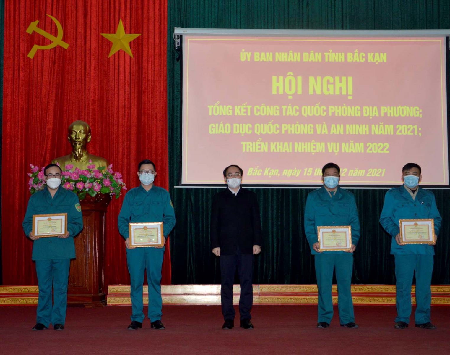 Năm 2021, Tỉnh ủy, HĐND, UBND tỉnh Bắc Kạn đã lãnh đạo, chỉ đạo công tác QPĐP toàn diện, chặt chẽ, đúng quy định. Kết quả nổi bật là: Chỉ đạo LLVT tỉnh duy trì nghiêm chế độ trực SSCĐ, trực cứu hộ, cứu nạn; trong năm đã huy động hơn 2.000 lượt cán bộ, chiến sĩ lực lượng thường trực, DQTV, DBĐV tuần tra, canh gác, tham gia khắc phục hậu quả thiên tai, tìm kiếm cứu nạn, cháy rừng và phòng chống dịch bệnh Covid-19. Huy động 4.000 lượt bộ đội địa phương, DQTV và các lực lượng khác làm tốt tham gia giữ gìn an ninh chính trị, trật tự an toàn xã hội. Chế độ trực ban, trực sẵn sàng chiến đấu ở các cấp được duy trì nghiêm túc; tiềm lực khu vực phòng thủ được tăng cường, củng cố… Đặc biệt, năm 2021, Tỉnh ủy, HĐND, UBND tỉnh đã hoàn thành xuất sắc nhiệm vụ diễn tập khu vực phòng thủ tỉnh, được Quân khu khen thưởng. Trong năm đảm bảo 100% chỉ tiêu nhập ngũ với 700 công dân lên đường thực hiện nghĩa vụ quân sự. Đã chỉ đạo, triển khai bồi dưỡng kiến thức quốc phòng an ninh cho 9.430 đối tượng, kết quả đạt khá; giáo dục quốc phòng và an ninh trong 24 trường học cho 8.481 học sinh, kết quả khá...