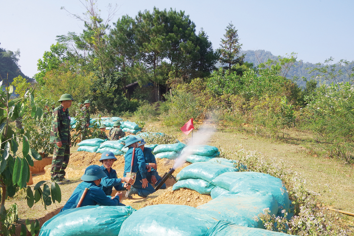Dân quân tỉnh Lạng Sơn tham gia thực binh bắn đạn thật trong diễn tập khu vực phòng thủ.