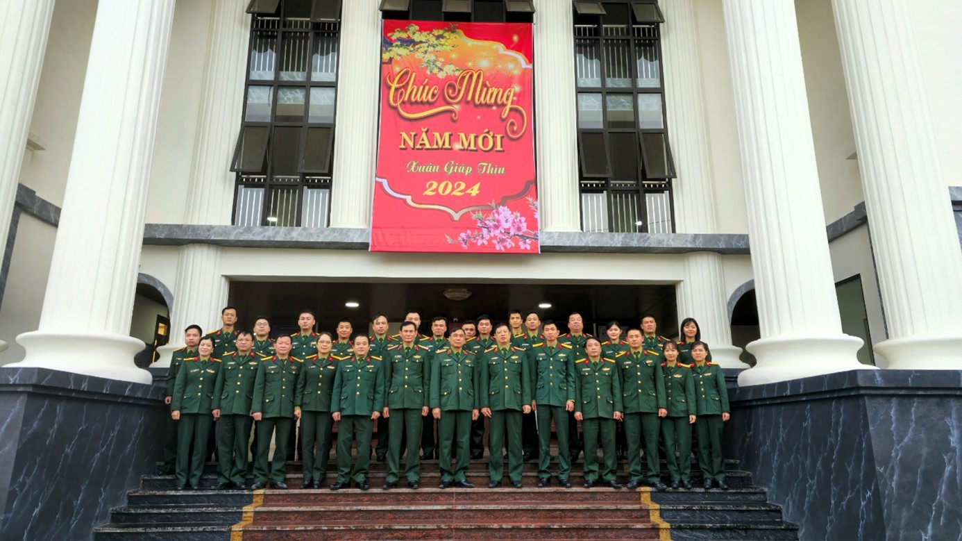 Các đại biểu tham dự Hội nghị chụp ảnh lưu niệm tại Trụ sở Tòa án quân sự Quân khu.