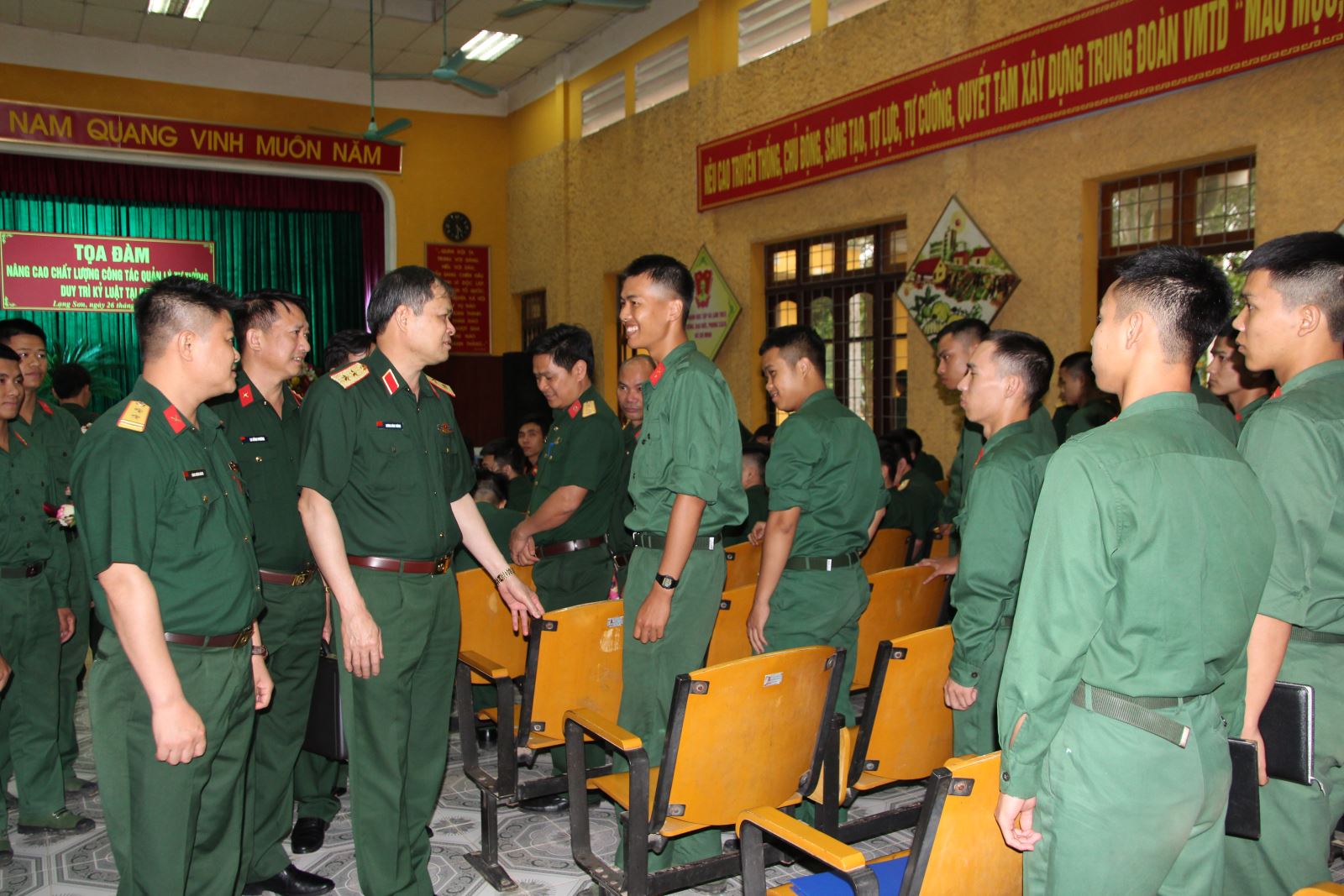Chính ủy Quân khu trò chuyện, động viên chiến sĩ Trung đoàn 12, Sư đoàn 3.