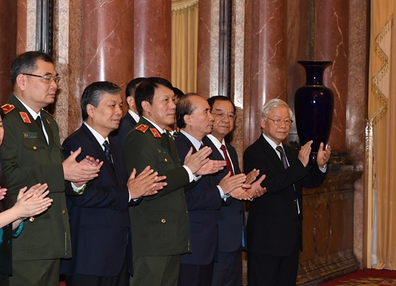 Tổng Bí thư, Chủ tịch nước Nguyễn Phú Trọng, Bí thư Quân ủy Trung ương (QUTƯ), Chủ tịch Hội đồng Quốc phòng và An ninh, Thống lĩnh các lực lượng vũ trang chủ trì buổi lễ.