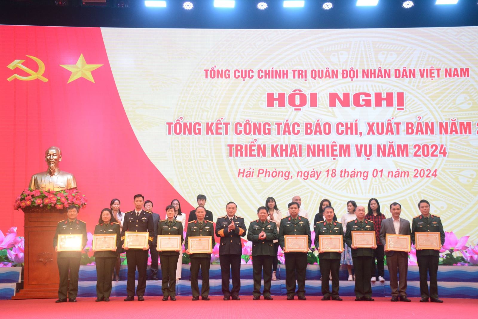 Trao bằng khen của thủ trưởng Tổng cục Chính trị cho các cá nhân có thành tích xuất sắc trong tiến hành công tác tuyên truyền báo chí về nhiệm vụ quân sự, quốc phòng năm 2023.