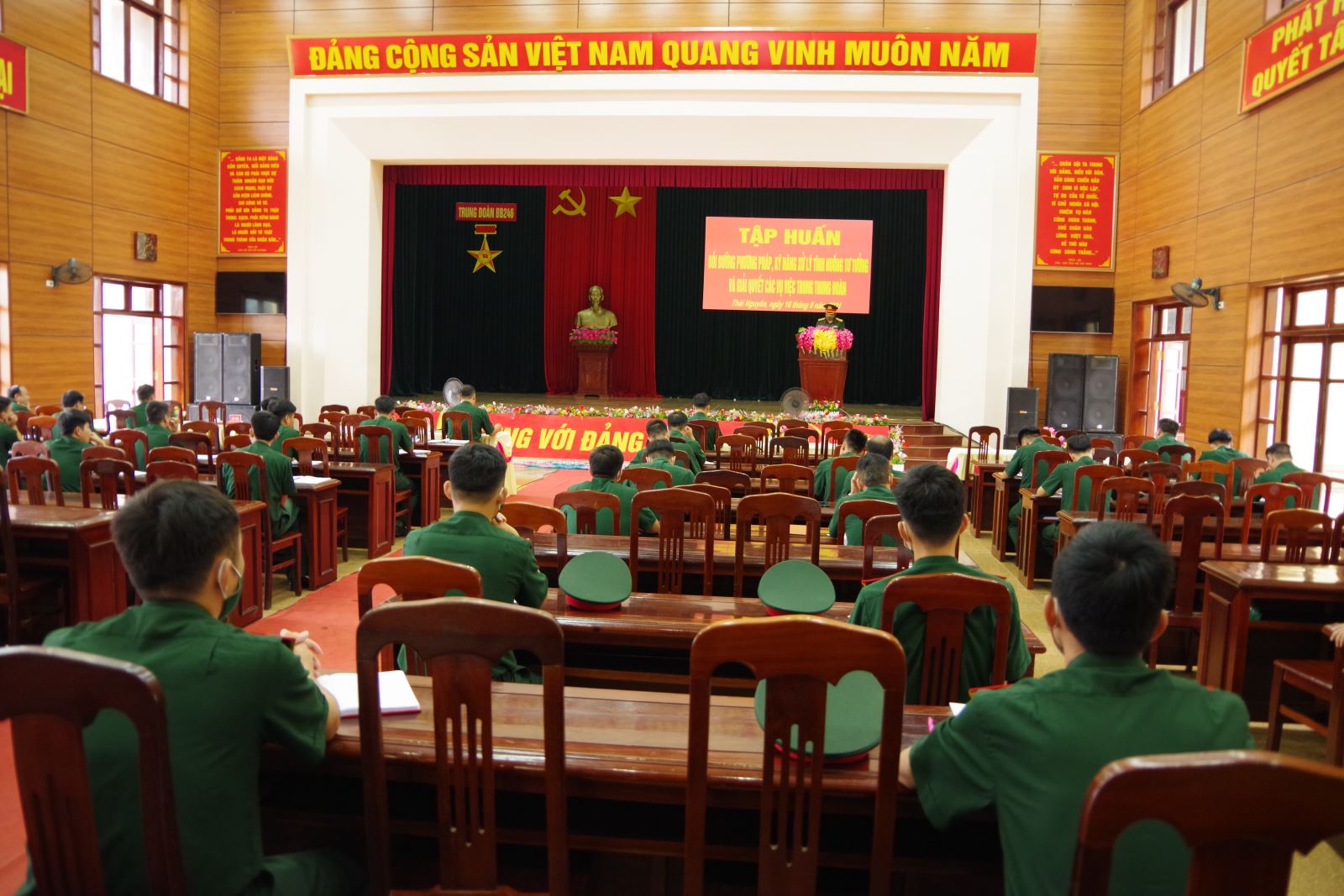 Trong thời gian 1 ngày, các đồng chí cán bộ được giới thiệu, truyền đạt phương pháp, cách thức nắm tình hình tư tưởng và quản lý bộ đội, ngăn chặn hành vi vi phạm pháp luật, kỷ luật nghiêm trọng trong đơn vị; quy trình các bước xử lý một vụ việc ở đơn vị; phát huy hiệu quả hoạt động của “Tổ tư vấn tâm lý pháp luật”; thảo luận xử trí các tình huống tư tưởng xảy ra ở đơn vị.