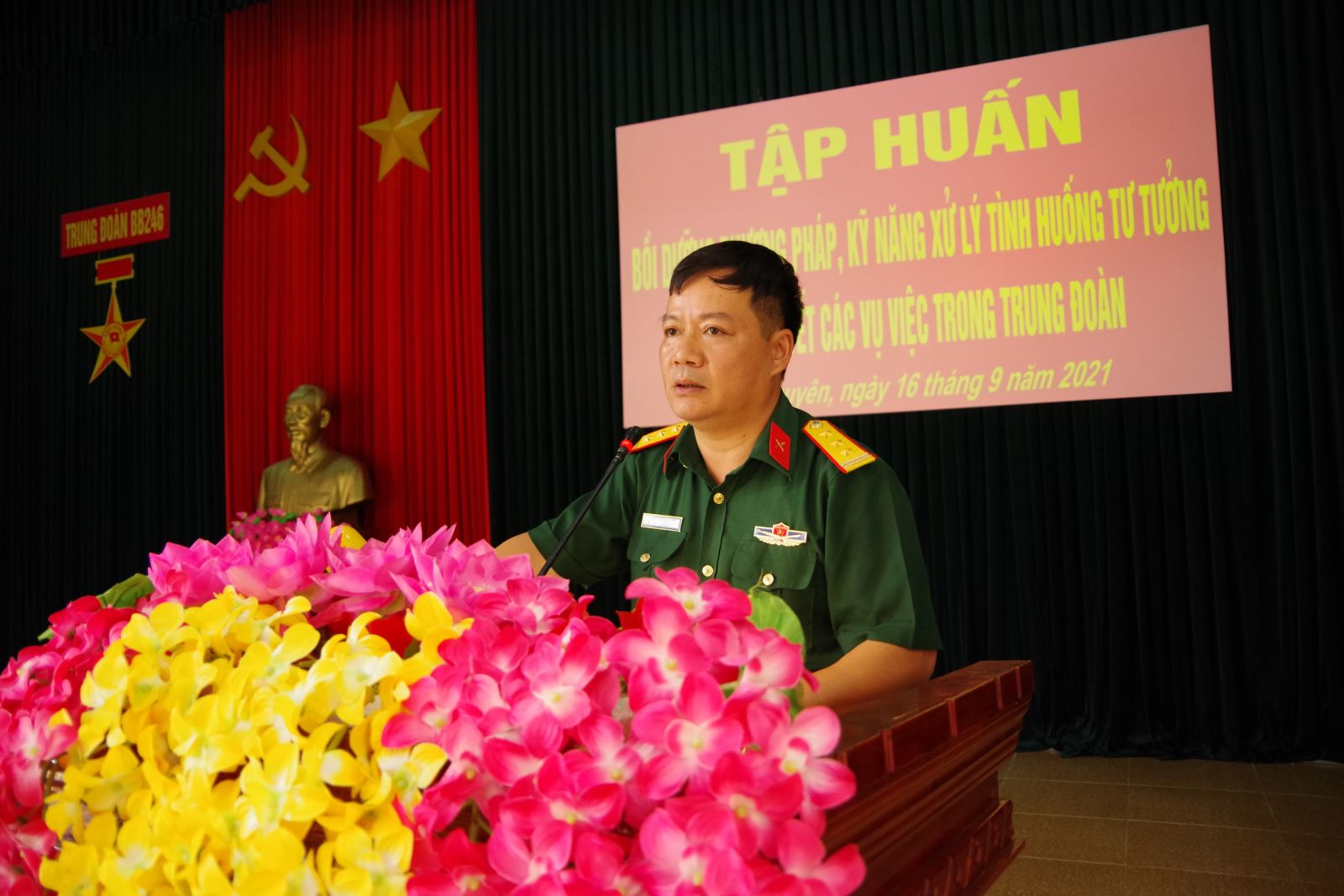 Thượng tá Nguyễn Giang Hà, Chính ủy Trung đoàn 246 phát biểu chỉ đạo lớp tập huấn.
