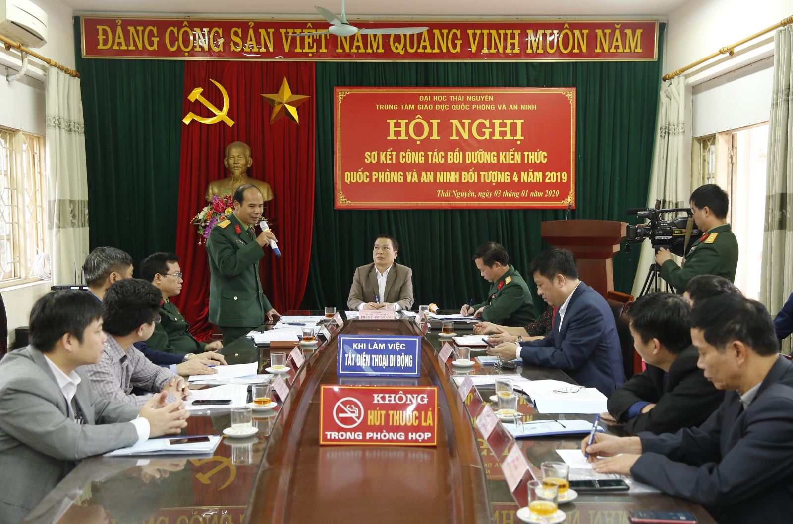 Phát biểu tại hội nghị, Đại tá Đỗ Đại Phong, Phó tham mưu trưởng Quân khu ghi nhận, đánh giá cao tinh thần trách nhiệm của Ban lãnh đạo Đại học Thái Nguyên trong công tác lãnh đạo, chỉ đạo và triển khai tổ chức bồi dưỡng kiến thức QPAN cho đội ngũ cán bộ, đảng viên, viên chức của các nhà trường bảo đảm đúng kế hoạch và đạt mục đích, yêu cầu đề ra. Đồng chí đề nghị thời gian tới, Trung tâm giáo dục QPAN cần phối hợp hiệp đồng chặt chẽ với các cơ quan chức năng Bộ CHQS tỉnh; Hội đồng giáo dục QPAN của tỉnh, thành phố; các cơ sở giáo dục đại học và các đơn vị trực thuộc Đại học Thái Nguyên, đề ra nhiều biện pháp để tiếp tục tổ chức thực hiện có hiệu quả nhiệm vụ giáo dục QPAN.