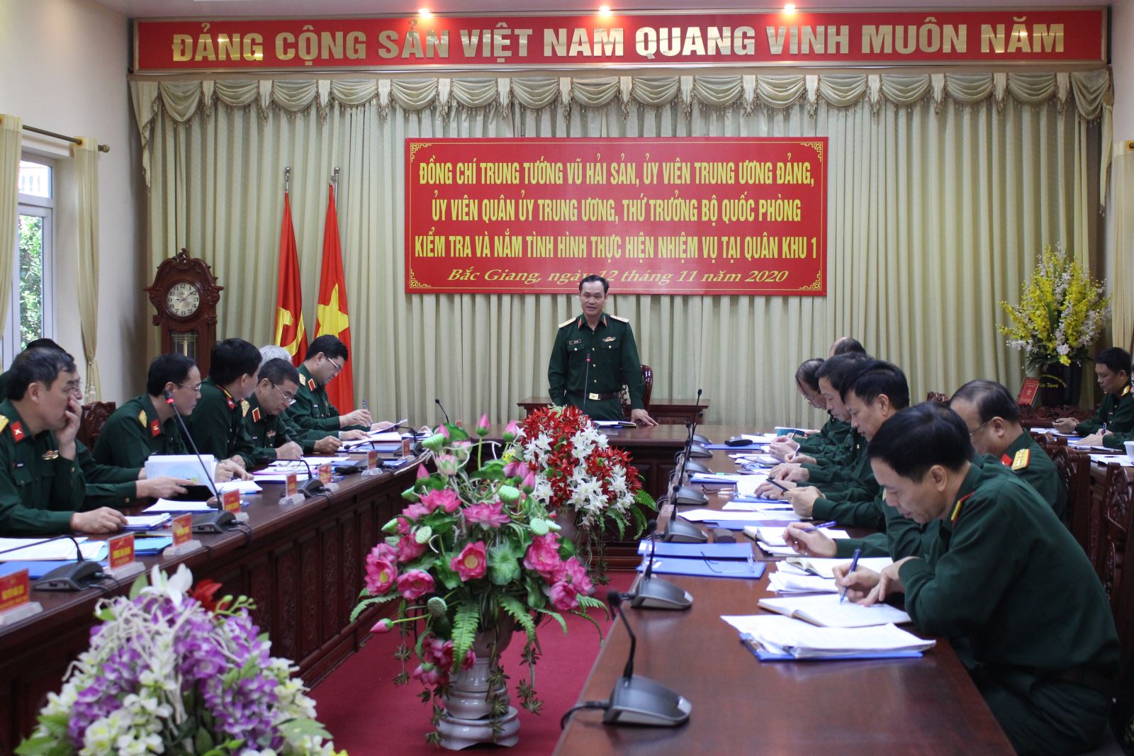Trung tướng Vũ Hải Sản, Ủy viên Trung ương Đảng, Thứ trưởng Bộ Quốc phòng làm việc với Bộ tư lệnh Quân khu.