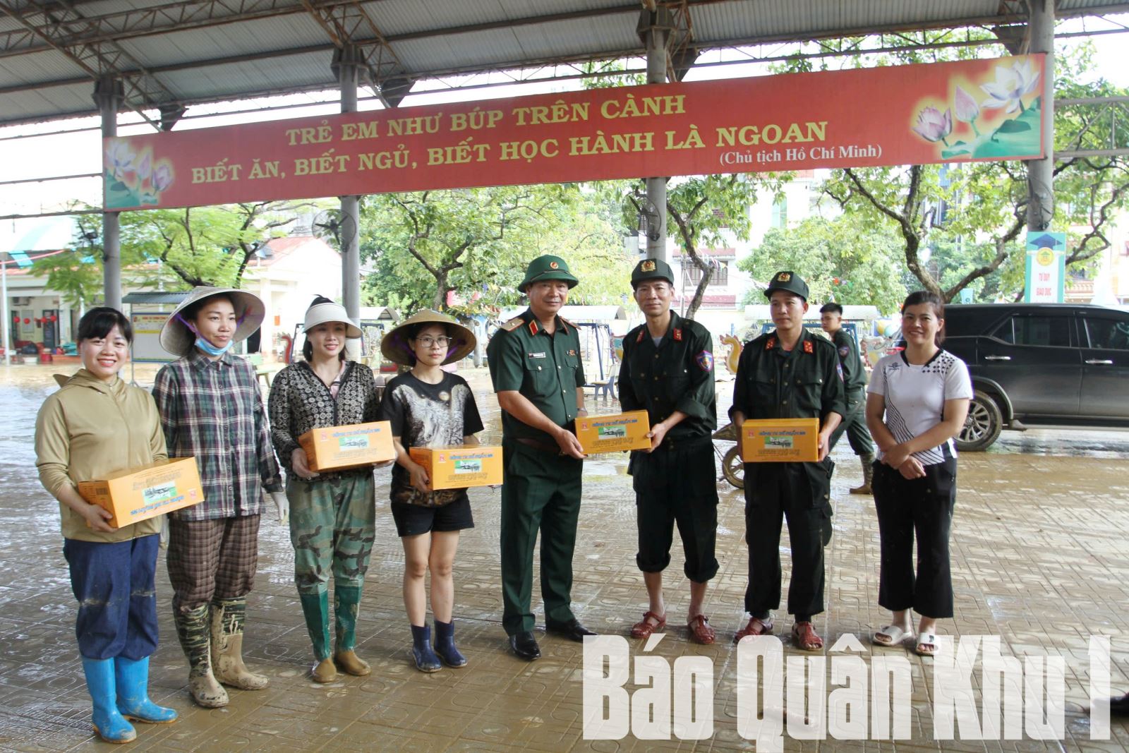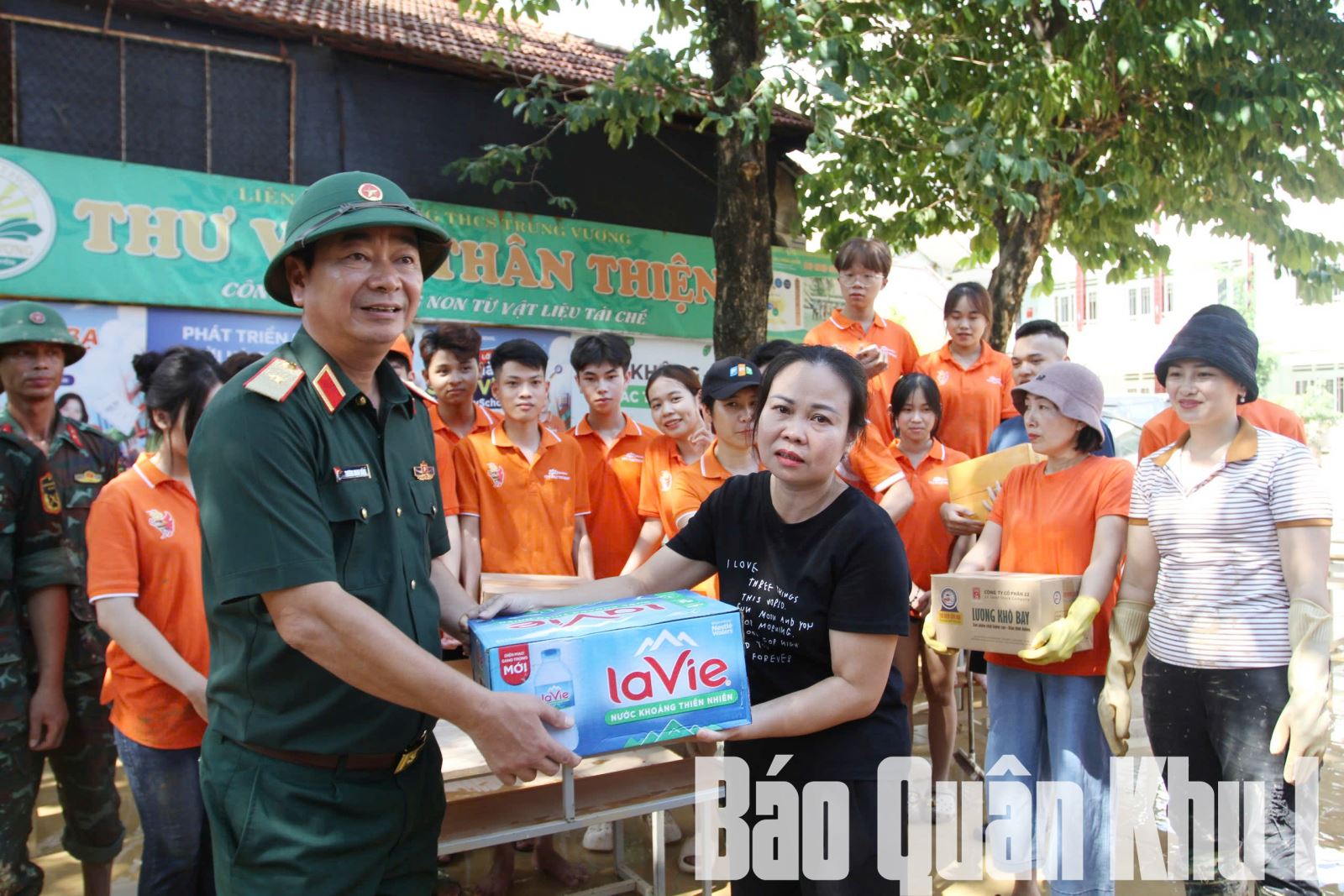 Kiểm tra các đơn vị LLVT phối hợp với địa phương khắc phục hậu quả sau bão, lũ tại: Trung tâm Y tế tỉnh Thái Nguyên, Trường Trung học cơ sở Trưng Vương, Trường Mầm non 19/5 Tân Lập, phường Phan Đình Phùng, Thái Nguyên… đồng chí Tư lệnh Quân khu biểu dương tinh thần chủ động, trách nhiệm cao vì nhân dân phục vụ của LLVT tỉnh Thái Nguyên và các đơn vị LLVT Quân khu trong công tác giúp dân khắc phục hậu quả bão, lũ. Tập trung cao quân số, trang bị, phương tiện hiện có để giúp nhân dân khắc phục hậu quả. Tổ chức cấp phát lương khô cho nhân dân và điều động các lực lượng phối hợp cùng nhân dân củng cố dọn dẹp công sở, nhà cửa kịp thời, không để người dân thiếu đói, không có chỗ ở. Đặc biệt, Quân khu yêu cầu các lực lượng khẩn trương dọn dẹp, sửa chữa trường học, trạm y tế, nhà dân bị thiệt hại nặng nề, bảo đảm an toàn tuyệt đối người và tài sản giúp nhân dân sớm ổn định đời sống.