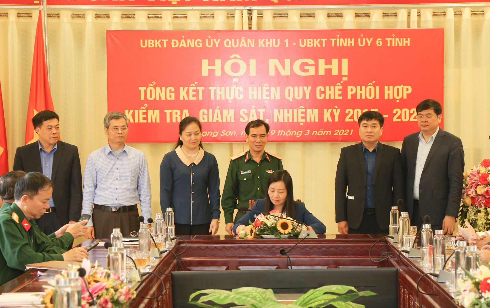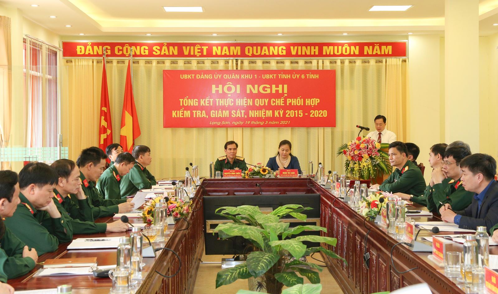 Sáng 19-3, tại Bộ CHQS tỉnh Lạng Sơn diễn ra hội nghị tổng kết thực hiện Quy chế phối hợp công tác kiểm tra, giám sát (KTGS) và kỷ luật của Đảng giữa UBKT Đảng ủy Quân khu 1 với UBKT Tỉnh ủy 6 tỉnh trên địa bàn, nhiệm kỳ 2015-2020. Dự hội nghị có đồng chí Nguyễn Thanh Sơn, Phó vụ trưởng, Vụ Trung ương 1A, Ủy ban Kiểm tra Trung ương; Thiếu tướng Nguyễn Ngọc Phương, Ủy viên chuyên trách UBKT Quân ủy Trung ương; đại biểu lãnh đạo tỉnh Lạng Sơn; đại biểu cơ quan UBKT Quân khu 1 và cơ quan UBKT Tỉnh ủy 6 tỉnh trên địa bàn. Thiếu tướng Nguyễn Đình Chiêu, Phó Chính ủy Quân khu 1, Chủ nhiệm UBKT Đảng ủy Quân khu và đồng chí Đoàn Thị Loan, Ủy viên Ban Thường vụ, Chủ nhiệm UBKT Tỉnh ủy Lạng Sơn đồng chủ trì hội nghị.