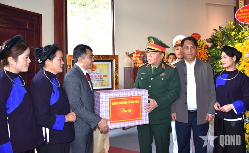 Đại tướng Nguyễn Trọng Nghĩa trao quà tặng Ban Quản lý Khu di tích Quốc gia đặc biệt rừng Trần Hưng Đạo.