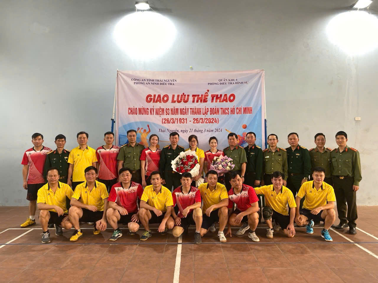 Cán bộ, nhân viên Phòng Điều tra hình sự Quân khu giao lưu bóng chuyền hơi với Phòng An ninh Điều tra, công an tỉnh Thái Nguyên.