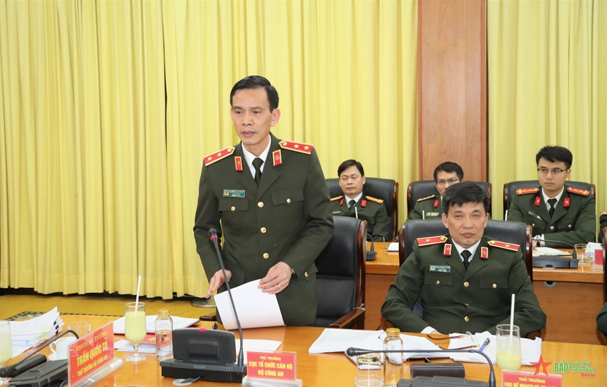 Đại biểu Bộ Công an phát biểu tại hội nghị. Ảnh: MẠNH HÙNG