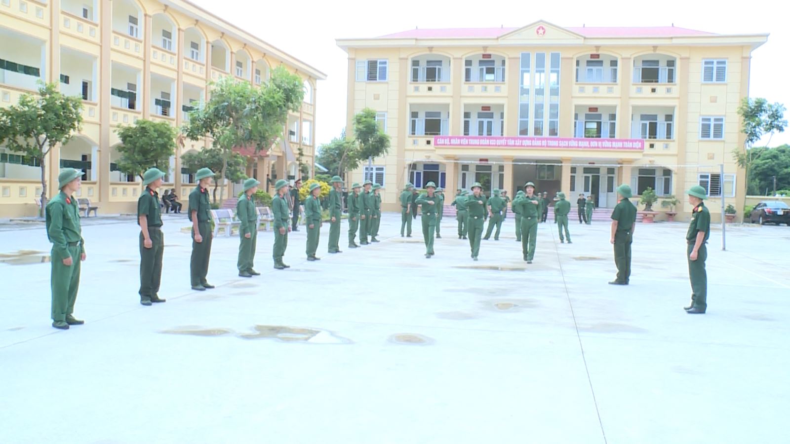 Giờ huấn luyện điều lệnh đội ngũ của SQDB tại Trung đoàn 833, Bộ CHQS tỉnh Bắc Ninh.