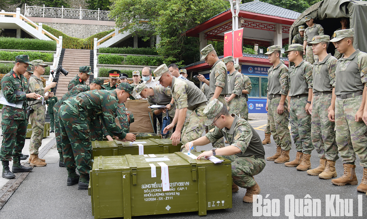 Bộ đội hai nước phối hợp kiểm tra, niêm phong vũ khí, khí tài tại cửa khẩu Quốc tế Hữu Nghị.