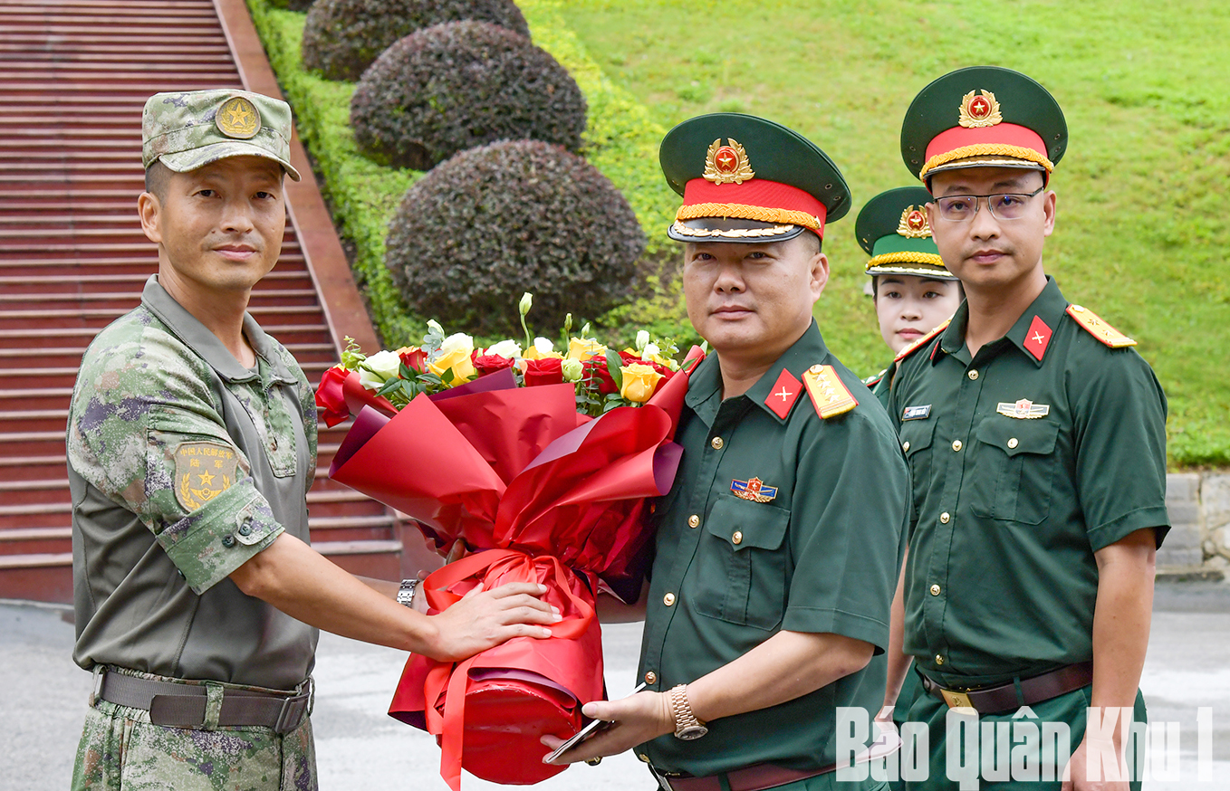 Đại diện phía Trung Quốc tặng hoa, chào đón đoàn Việt Nam sang tham gia “Huấn luyện liên hợp Lục quân Việt Nam-Trung Quốc” năm 2025.