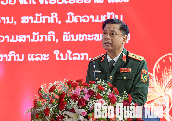 Đại diện phía Lào, đồng chí Visong Inpanhphim, Thứ trưởng Bộ Lao động, bày tỏ sự trân trọng đối với sự hợp tác chặt chẽ giữa hai Đảng, hai Nhà nước, đặc biệt là giữa quân đội hai nước. Đồng chí khẳng định Hội chợ thương mại Việt Nam - Lào 2025 không chỉ là sự kiện kinh tế quan trọng mà còn là minh chứng sinh động cho tình đoàn kết đặc biệt, hợp tác toàn diện giữa hai nước; đồng thời nhấn mạnh, sự kiện sẽ góp phần thúc đẩy giao thương, tạo thêm cơ hội việc làm, nâng cao hiệu quả hợp tác trong sản xuất, kinh doanh và chuyển giao công nghệ; đồng thời bày tỏ mong muốn các doanh nghiệp Việt Nam tiếp tục mở rộng đầu tư tại Lào, nhất là trong các lĩnh vực công nghiệp, nông nghiệp công nghệ cao, đào tạo nghề và phát triển nguồn nhân lực.
