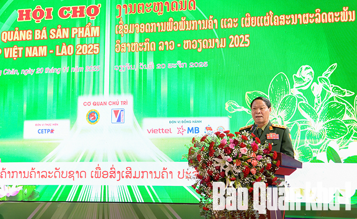 Phát biểu khai mạc, Thượng tướng Nguyễn Trường Thắng nhấn mạnh rằng những năm qua, Việt Nam - Lào đã tổ chức nhiều hoạt động chính trị, kinh tế - thương mại, văn hóa - xã hội từ cấp Nhà nước đến các bộ, ngành và địa phương bằng nhiều hình thức phong phú, đa dạng. Trong lĩnh vực quốc phòng, hai Bộ Quốc phòng duy trì phối hợp chặt chẽ thông qua trao đổi đoàn cấp cao, huấn luyện, diễn tập chung, đào tạo cán bộ, giao lưu biên giới và đối ngoại nhân dân. Hội chợ thương mại 2025 là một trong những hoạt động mang ý nghĩa thiết thực, góp phần khẳng định mối quan hệ đoàn kết thủy chung, trong sáng, bền chặt giữa Đảng, Nhà nước, nhân dân và quân đội hai nước Việt Nam -Lào.