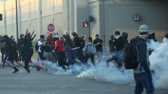 Cảnh sát dùng hơi cay giải tán đám đông biểu tình trên một con phố ở Minneapolis, bang Minnesota. Ảnh: Getty Images.