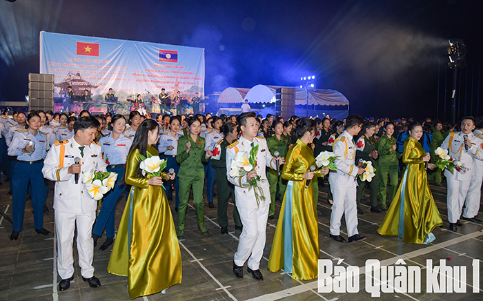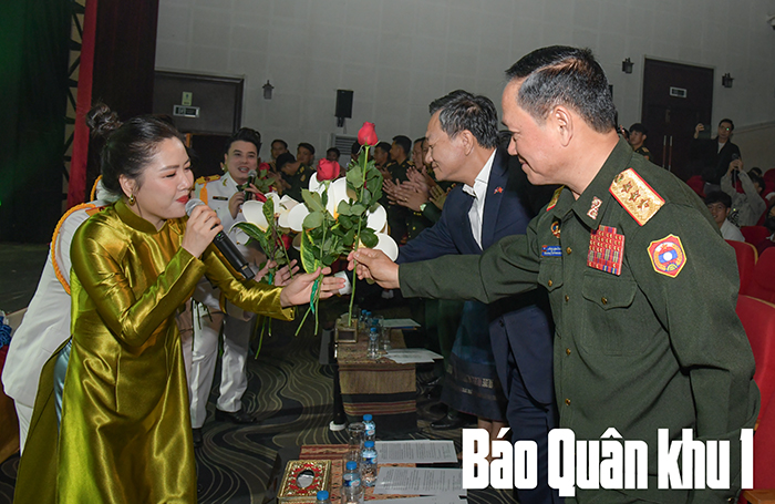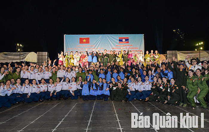 Xuyên suốt chương trình biểu diễn nghệ thuật, 19 tiết mục ca, múa, nhạc được dàn dựng công phu với chủ đề Khúc hát hữu nghị “Vang mãi bản hùng ca Việt - Lào” đã đưa khán giả đi qua từng cung bậc cảm xúc đa sắc: hào sảng, trữ tình, rồi sôi nổi, trẻ trung. Những làn điệu dân ca Việt Bắc, những khúc hát miền núi Đông Bắc quen thuộc hòa quyện cùng giai điệu Lào mềm mại, tạo nên một bản hòa tấu văn hóa đậm tình hữu nghị. Đó không chỉ là biểu diễn, mà còn là sự gửi gắm của những người lính nghệ sĩ: “Tình đoàn kết Việt - Lào là mãi mãi”.