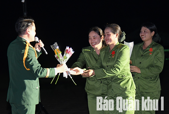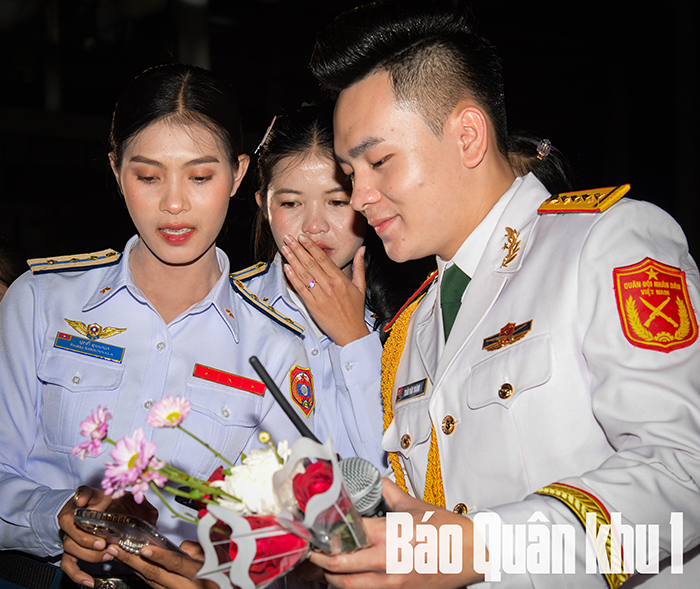 Khi chương trình tiếp tục đến Học viện Lục quân Komadam, không khí đêm diễn như được nhân lên bởi những giai điệu quen thuộc với cán bộ, chiến sĩ nơi đây. Thiếu tướng Khamsouk Inthaphone, Giám đốc Học viện, khẳng định rằng sự xuất hiện của Đoàn Văn công Quân khu 1 không chỉ mang đến món quà nghệ thuật mà còn là sự động viên tinh thần sâu sắc dành cho cán bộ, chiến sĩ các đơn vị đang tích cực luyện tập phục vụ sự kiện trọng đại của đất nước.