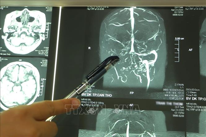 Hình ảnh mạch máu não của bệnh nhân Trần Thị Th. bị tắc nghẽn. Ảnh: TTXVN phát