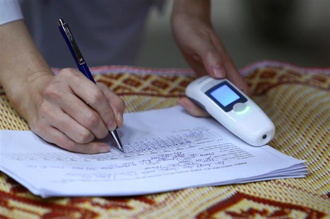Kiểm tra thân nhiệt thường xuyên để kiểm soát dịch COVID-19. Ảnh: TTXVN