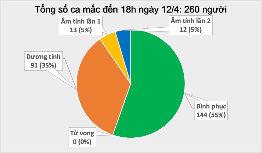 Tính đến 18 giờ ngày 12/4, Việt Nam ghi nhận thêm 2 ca mắc COVID-19, nâng tổng số lên 260 ca. Hai ca mắc mới đều là người dân thôn Hạ Lôi.