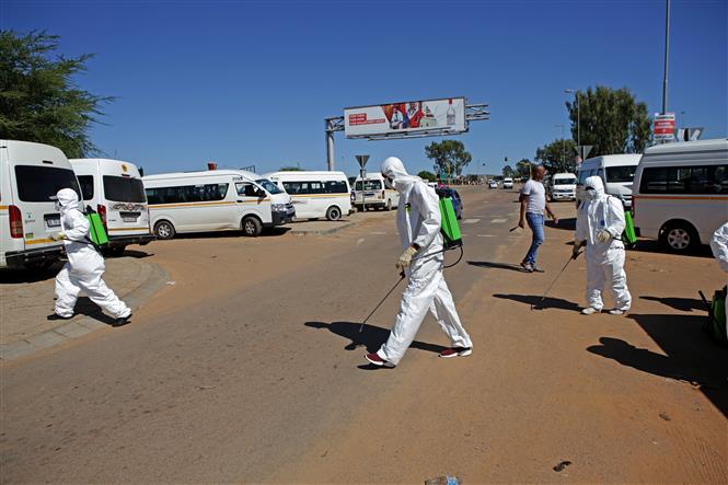 Phun thuốc khử trùng nhằm ngăn chặn sự lây lan của COVID-19 tại Mamelodi, Nam Phi ngày 6/4/2020. Ảnh: AFP/ TTXVN