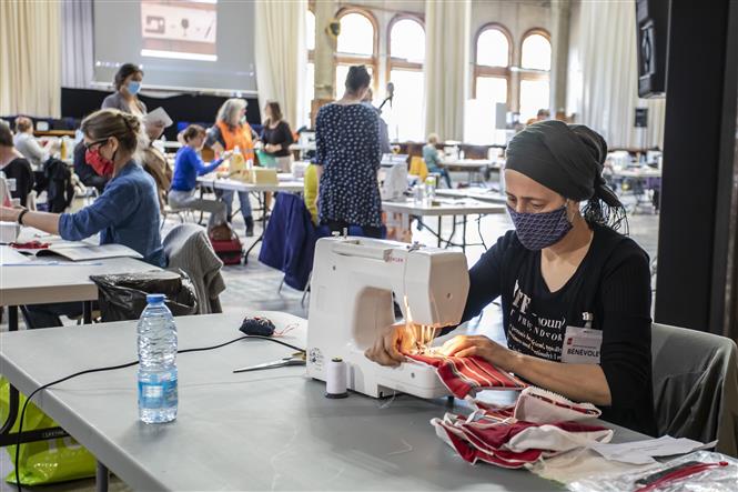 Một xưởng may khẩu trang ở Lille, Pháp. Ảnh: THX/TTXVN
