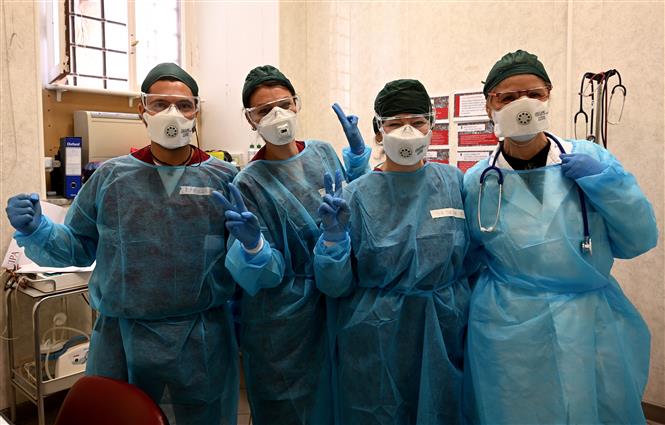 Nhân viên y tế làm việc tại một trạm xét nghiệm COVID-19 ở Rome, Italy. Ảnh: AFP/TTXVN
