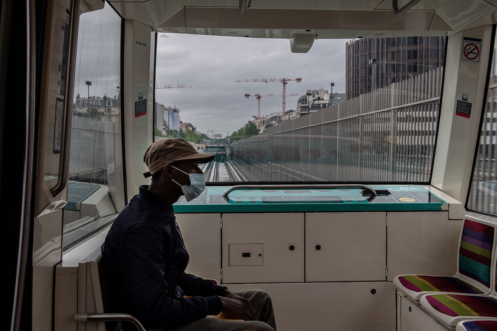 Hành khách đeo khẩu trang trên tàu điện ở Paris ngày 11/5. Ảnh: AFP/Getty Images