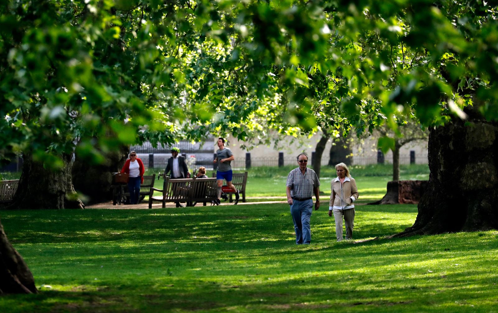 Người dân đi tập thể dục tại công viên St. James ở London ngày 10/5/2020. Ảnh: AP