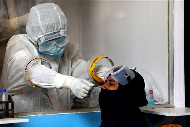 Trong ảnh: Nhân viên y tế lấy mẫu xét nghiệm COVID-19 cho người dân tại Dhaka, Bangladesh ngày 3/5/2020. Ảnh: THX/TTXVN