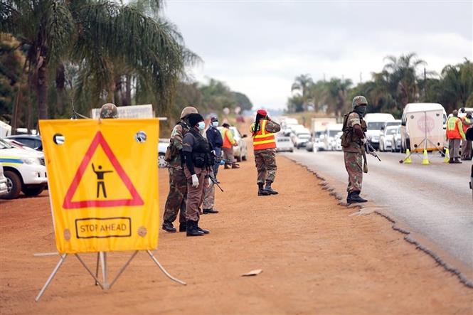 Lực lượng liên ngành kiểm tra các phương tiện giao thông trong thời gian Nam Phi áp dụng lệnh phong tỏa toàn quốc. Ảnh: Phi Hùng - PV TTXVN tại Nam Phi
