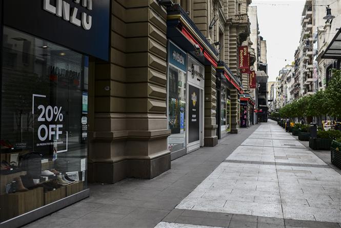 Các cửa hàng đóng cửa do dịch COVID-19 tại Buenos Aires, Argentina ngày 30/3/2020. Ảnh: AFP/TTXVN