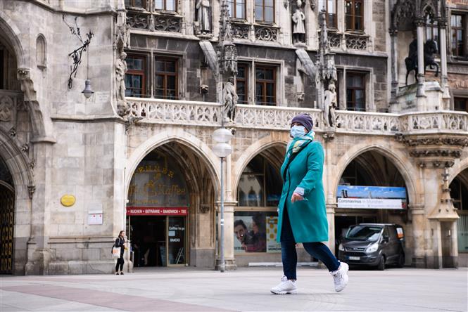 Người dân đeo khẩu trang phòng dịch COVID-19 tại Munich, Đức ngày 27/4/2020. Ảnh: THX/TTXVN