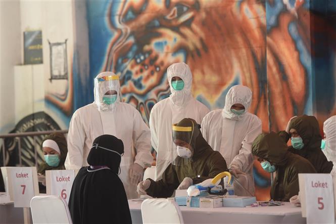 Nhân viện y tế thực hiện xét nghiệm cho người dân tại Indonesia. Ảnh: AFP/TTXVN