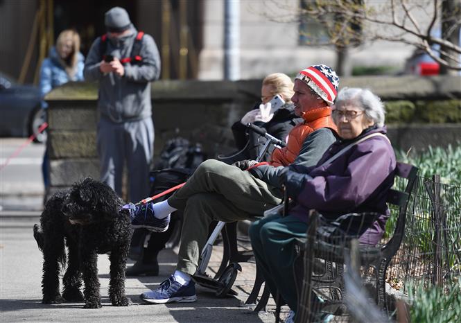 Người dân ngồi thư giãn tại công viên Trung tâm ở New York, Mỹ ngày 1/4/2020. Ảnh: AFP/TTXVN