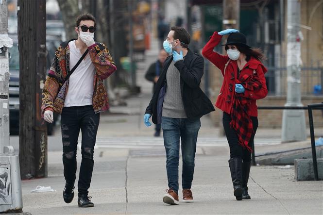 Người dân đeo khẩu trang nhằm ngăn chặn sự lây lan của dịch COVID-19 tại New York, Mỹ ngày 5/4/2020. Ảnh: THX/TTXVN