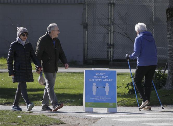 Người dân di chuyển trên đường phố tại Vancouver, Canada ngày 7/4/2020 trong bối cảnh dịch COVID-19 lan rộng. Ảnh: THX/TTXVN