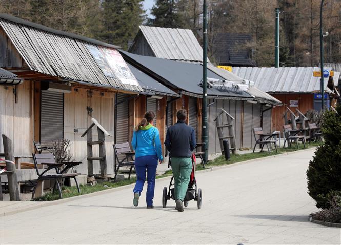Nhiều cửa hàng phải đóng cửa do dịch COVID-19 tại Zakopane, Ba Lan, ngày 13/4/2020. Ảnh: PAP/TTXVN
