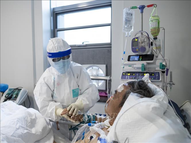 Nhân viên y tế điều trị cho bệnh nhân COVID-19 tại bệnh viện ở Vũ Hán, tỉnh Hồ Bắc, Trung Quốc ngày 11/4/2020. Ảnh: THX/ TTXVN