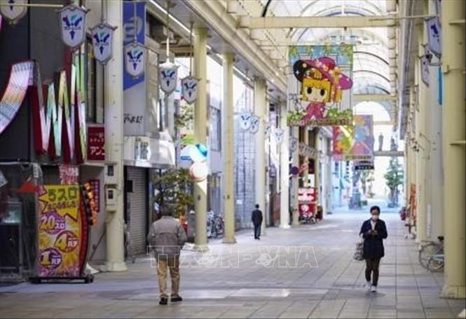 Nhiều cửa hàng phải đóng cửa do dịch COVID-19 tại khu phố thương mại ở Gifu, Nhật Bản, ngày 10/4/2020. Ảnh: Kyodo/TTXVN