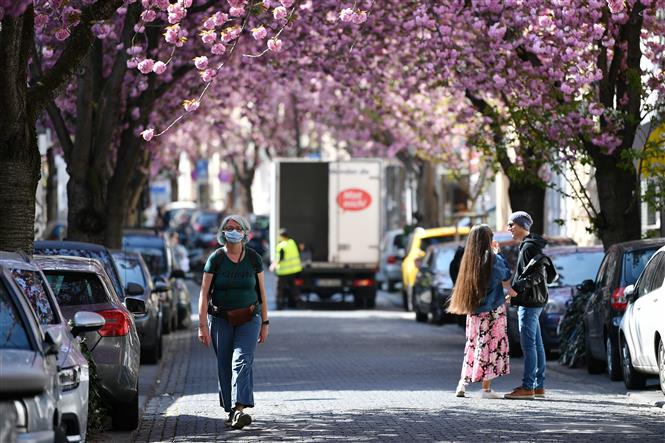 Người dân đeo khẩu trang phòng lây nhiễm COVID-19 tại Bonn, Đức ngày 7/4/2020. Ảnh: THX/ TTXVN