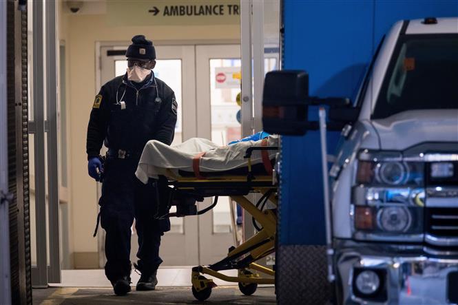 Nhân viên y tế chuyển bệnh nhân COVID-19 tới phòng cấp cứu tại bệnh viện ở New York, Mỹ ngày 16/4/2020. Ảnh: THX/ TTXVN